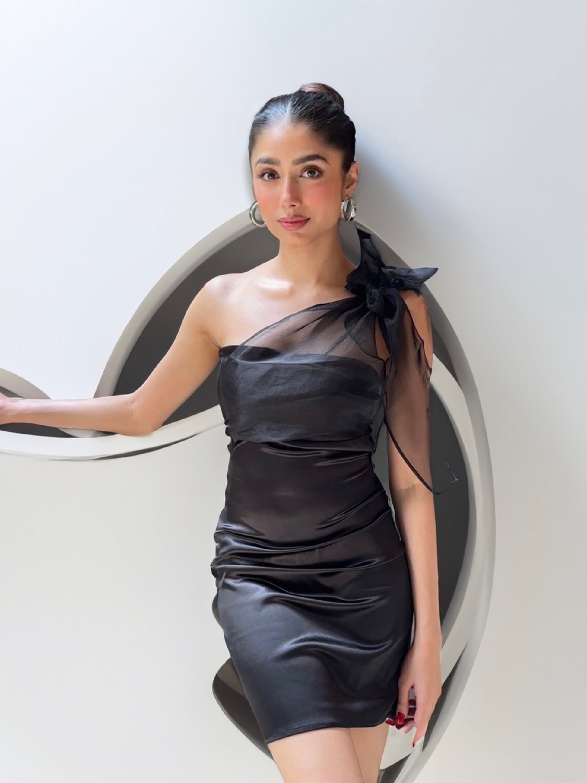 -Organza One Shoulder Top Knot Design