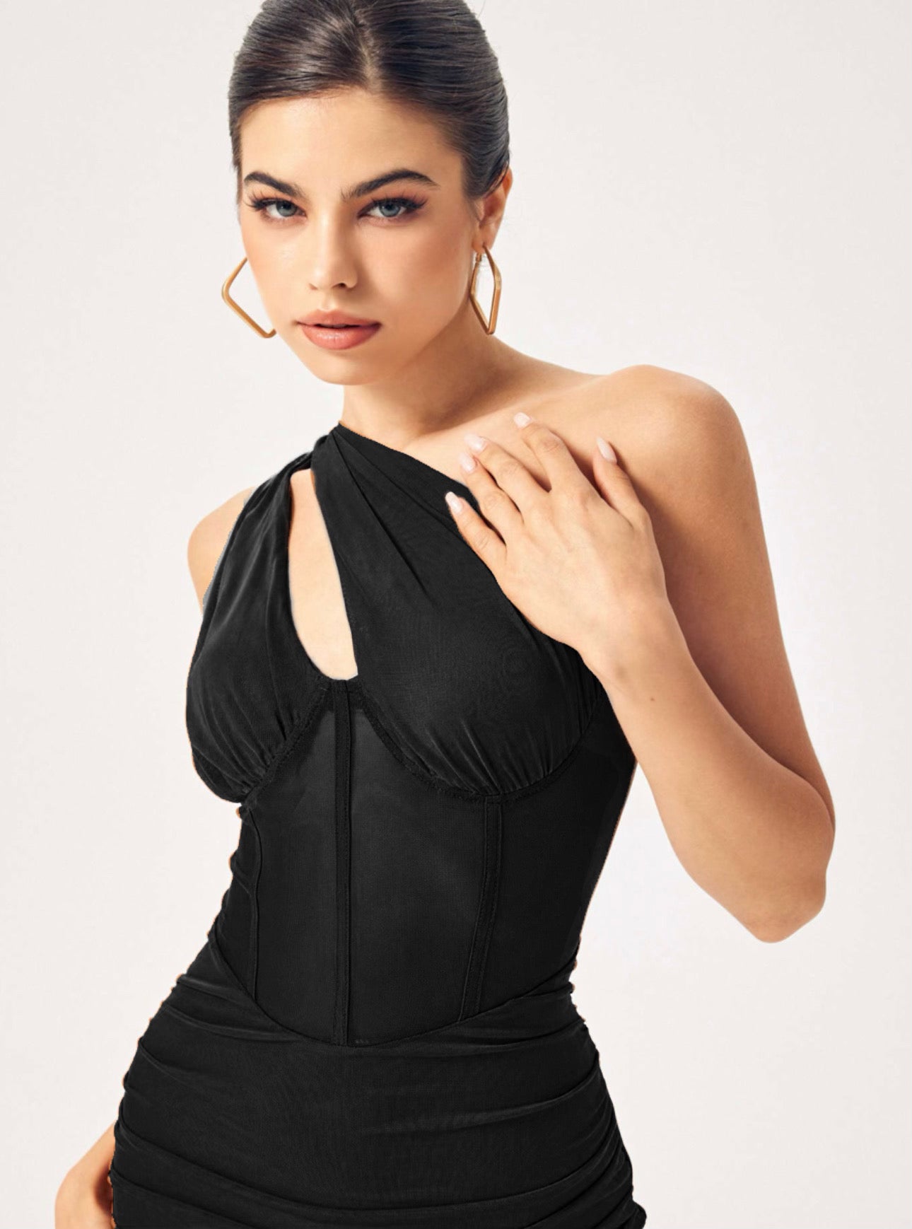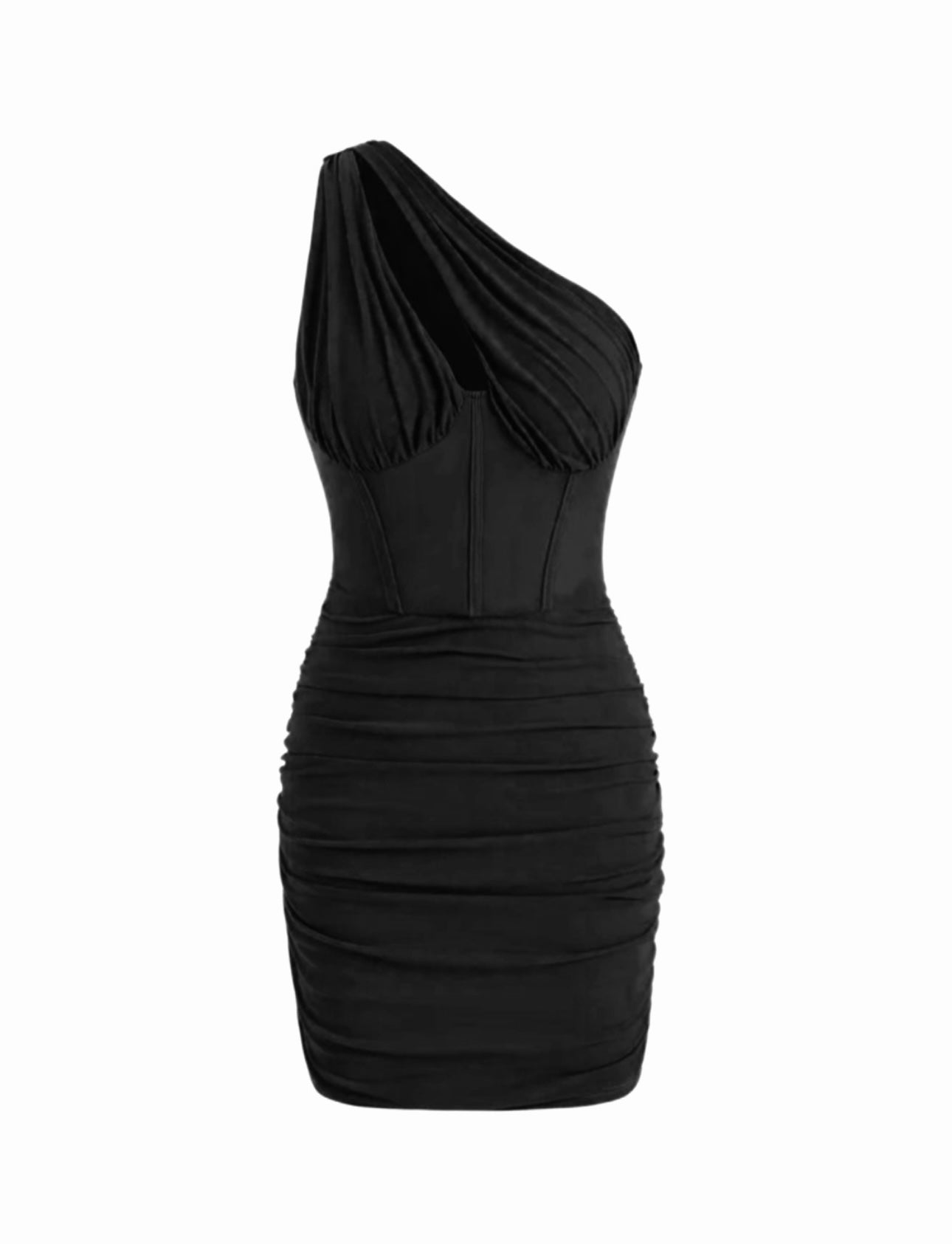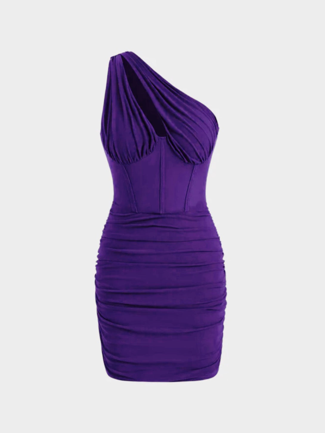 - One Shoulder Ruched Mini Dress